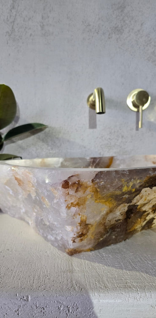 Quartz is a highly recognised material in interior design. Our basins are created from a whole piece of natural quartz, in an artisanal way. These gems originate from Brazil and we make them in:
